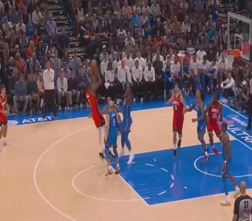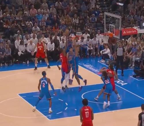 杜兰特在第二个加时赛还在持球猛攻,他是真的想赢,不过亚历山大的强攻也有效果,在还剩32.6秒的时候造成亚当斯犯规,2罚1中,雷霆以123比122领先火箭1分。