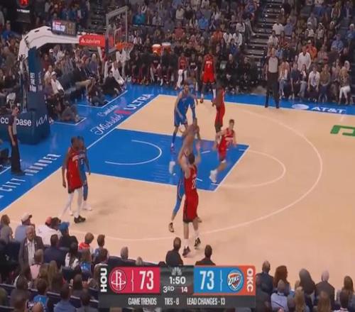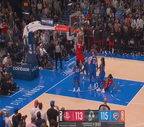 加时赛的雷霆一度取得领先优势,但火箭顽强追分,轮到申京在还剩8.8秒的时候抢到前场篮板,补扣命中,追到115平手。
