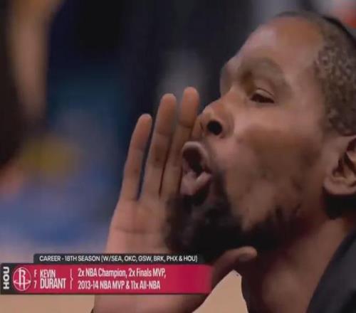 杜兰特在火箭的首秀上求胜欲望很足,但他6犯离场也是输球的一大原因。