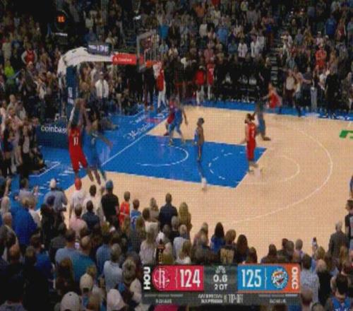 没办法,火箭还剩2.3秒由小贾巴里·史密斯执行绝杀,但没有命中,于是雷霆通过双加时大战以125比124险胜火箭。